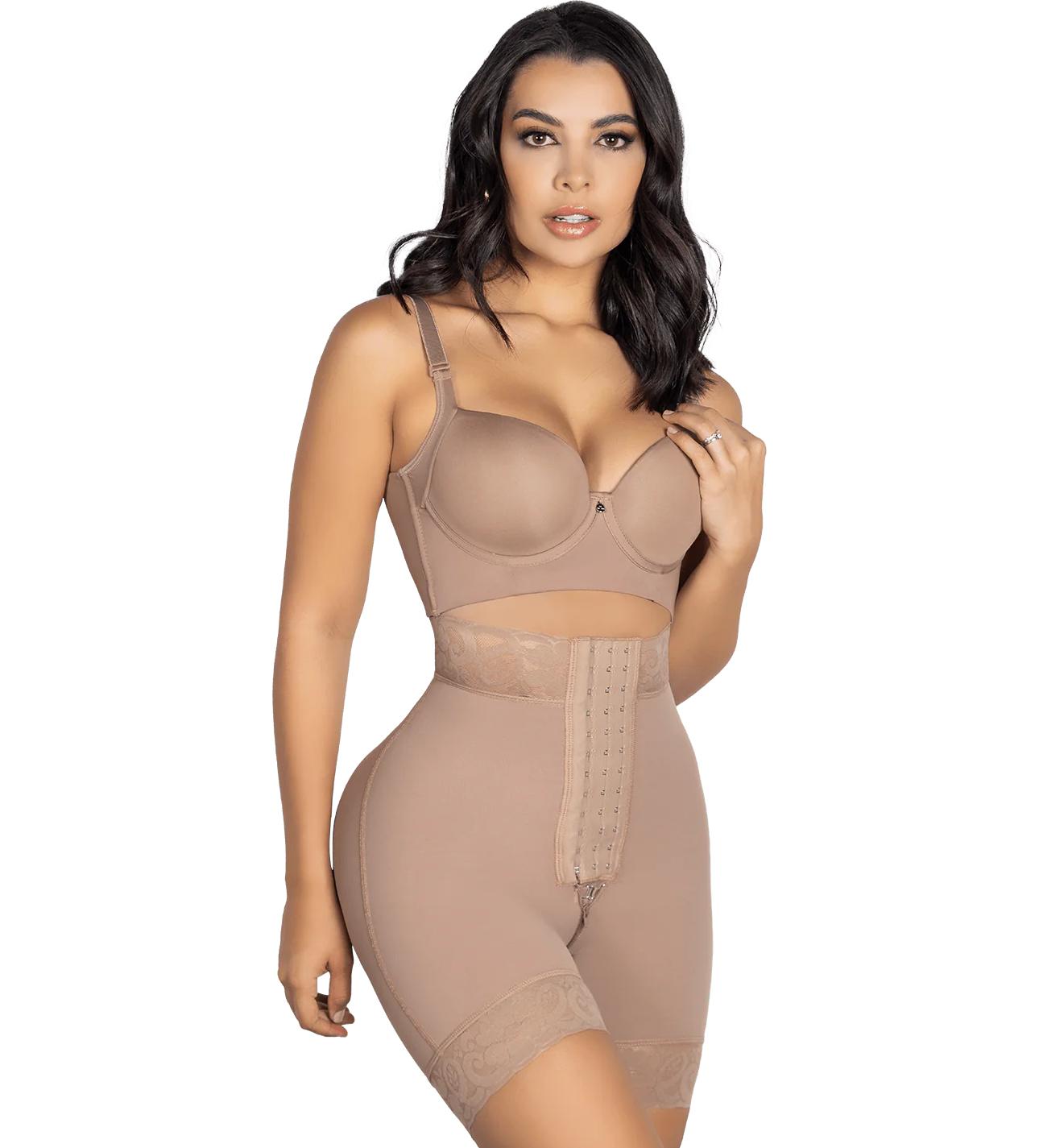 Our Shorts Levantacola con Broches-Ref 4520 offer maximum compression for all-day wear. The invisible design won't show under your clothing, while the three lines of brooches and Perineal zipper provide a perfect fit. Say goodbye to rolling or slipping, and hello to a lifted booty and flattened tummy. Elevate your look with confidence!